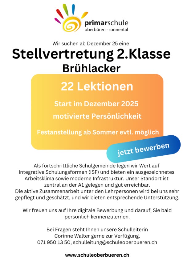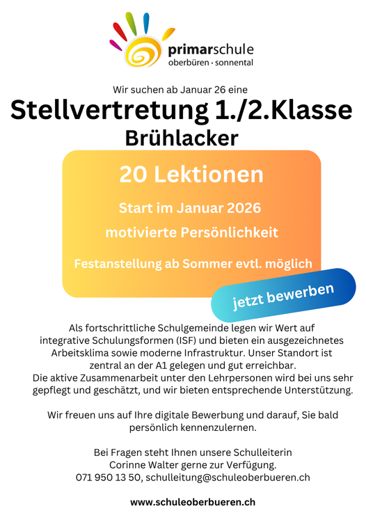 Zur Verstärkung unseres Teams suchen wir per Januar 2026 eine engagierte Lehrperson für den Zyklus 1.